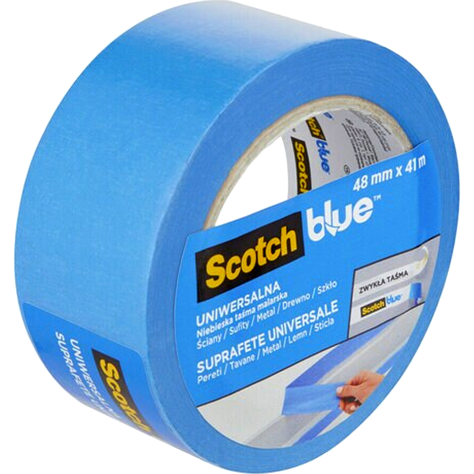 Uniwersalna niebieska taśma malarska 3M 2090 48mm do wielu powierzchni ScotchBlue™ pozostała osiągać profesjonalne rezultaty na większości powierzchni w pomieszczeniach i na zewnątrz. Ta uniwersalna taśma malarska 3M z klejem o średniej sile idealnie nadaje się do użytku na różnych powierzchniach: ścianach, sufitach, metalu, drewnie, szkle itd.
