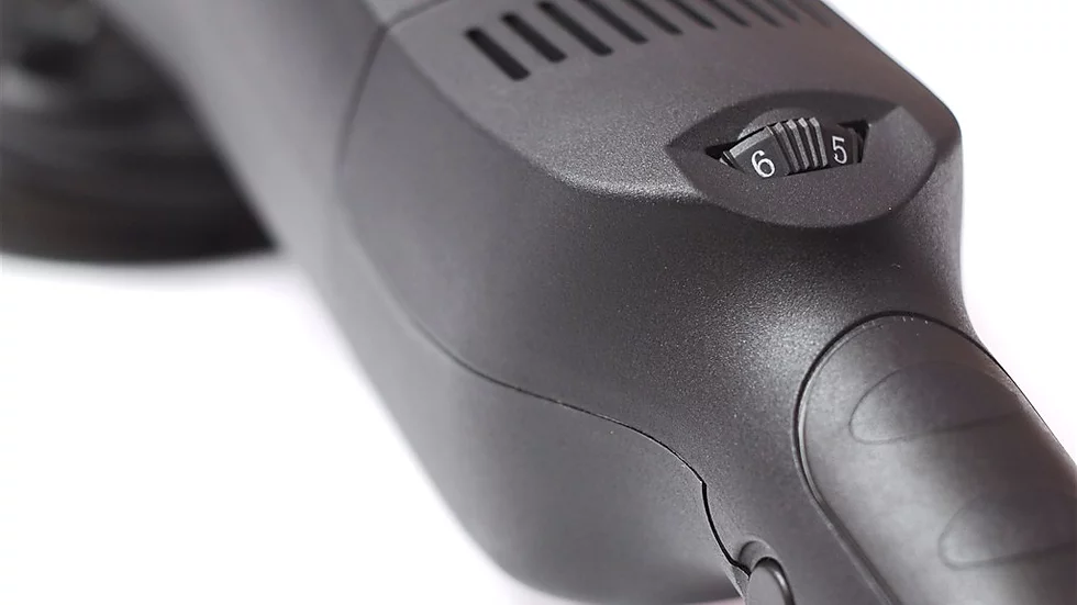Bardzo ważnym elementem nowego modelu jest obudowa. W porównaniu do poprzedniej serii, rzuca się w oczy dłuższy i bardziej praktyczny przedni grip. Jest on powleczony miękką gumą, tak samo jak tylna rękojeść. Na grzbiecie maszyny pojawiła się wygodna, miękka i szeroka stopka do bezpiecznego odkładania maszyny gwarantująca, że nie opadnie ona na bok, brudząc pad polerski. Kolejną cechą tej obudowy, jest umieszczony na grzbiecie w dogodnym do operowania miejscu, potencjometr obrotów w wersji z tzw. „klikami” zwiększającymi łatwość kontroli obrotów.