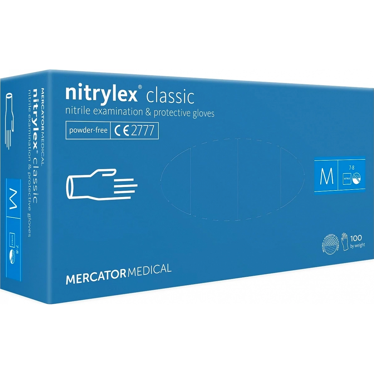 Rękawice nitrylowe MERCATOR Nitrylex Classic (dawniej Basic) M 100 szt. Nitrylex® classic (dawniej Basic) to najwyższej jakości klasyczne medyczne bezpudrowe rękawice nitrylowe. Najbardziej klasyczne rękawice nitrylowe w ofercie Mercator Medical. Chwytne i niekrępujące ruchów dłoni. Rękawice nitrylex® classic to podstawowe rękawice w kategorii III. Do kategorii III rękawic nitrylowych zalicza się rękawice o odporności na przenikanie mikroorganizmów, grzybów i bakterii, oraz niektórych substancji opisanych w normie. Pozwala to na wszechstronne użycie rękawic nitrylowych nitrylex® classic. Rękawiczki nitrylex® classic można używać podczas kontaktu z żywnością oraz podczas prac domowych i przydomowych.
