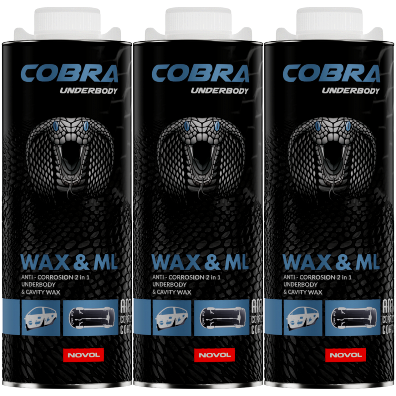 Bezbarwny wosk antykorozyjny z UV NOVOL Cobra Wax & ML 3L (3 x 1L). Dwufunkcyjny antykorozyjny transparentny wosk do konserwacji podwozia oraz zabezpieczenia profili zamkniętych