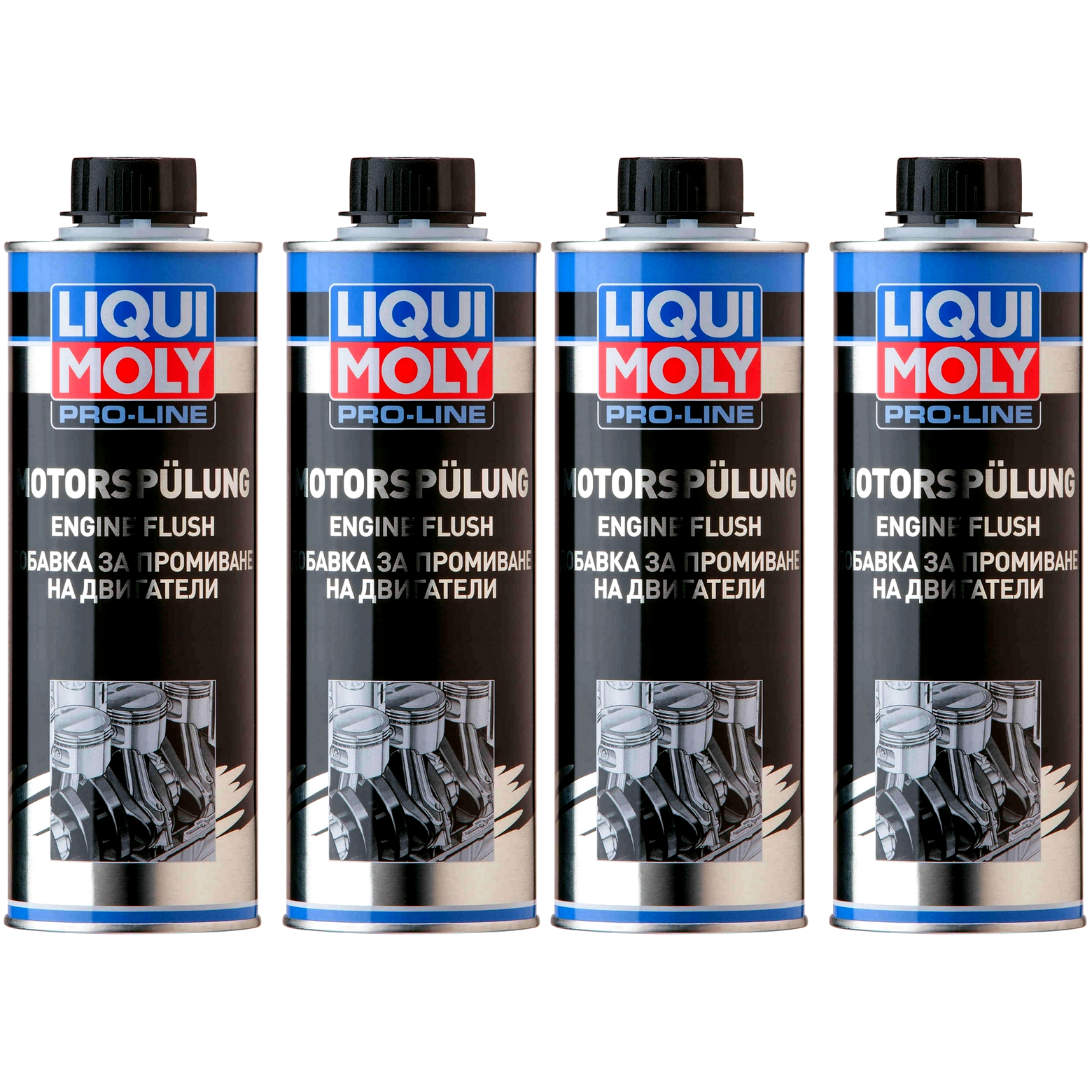 Płukanka do silnika LIQUI MOLY 2662 Pro Line Engine Flush 2L (4 x 500ml). Wysoce skuteczne detergenty i dodatki dyspergujące w połączeniu z płynnym nośnikiem przetestowanym w laboratorium i praktycznych próbach terenowych skutecznie rozpuszczają szlam i substancje tworzące nagar. Wszystkie rodzaje pozostałości rozpuszczalnych i nierozpuszczalnych w oleju są zawieszone i usunięte podczas kolejnej wymiany oleju. Silnik, który został wyczyszczony z osadów i zanieczyszczeń, a następnie napełniony jest świeżym olejem, który nie jest zanieczyszczony może rozwinąć swoje pełne właściwości użytkowe
