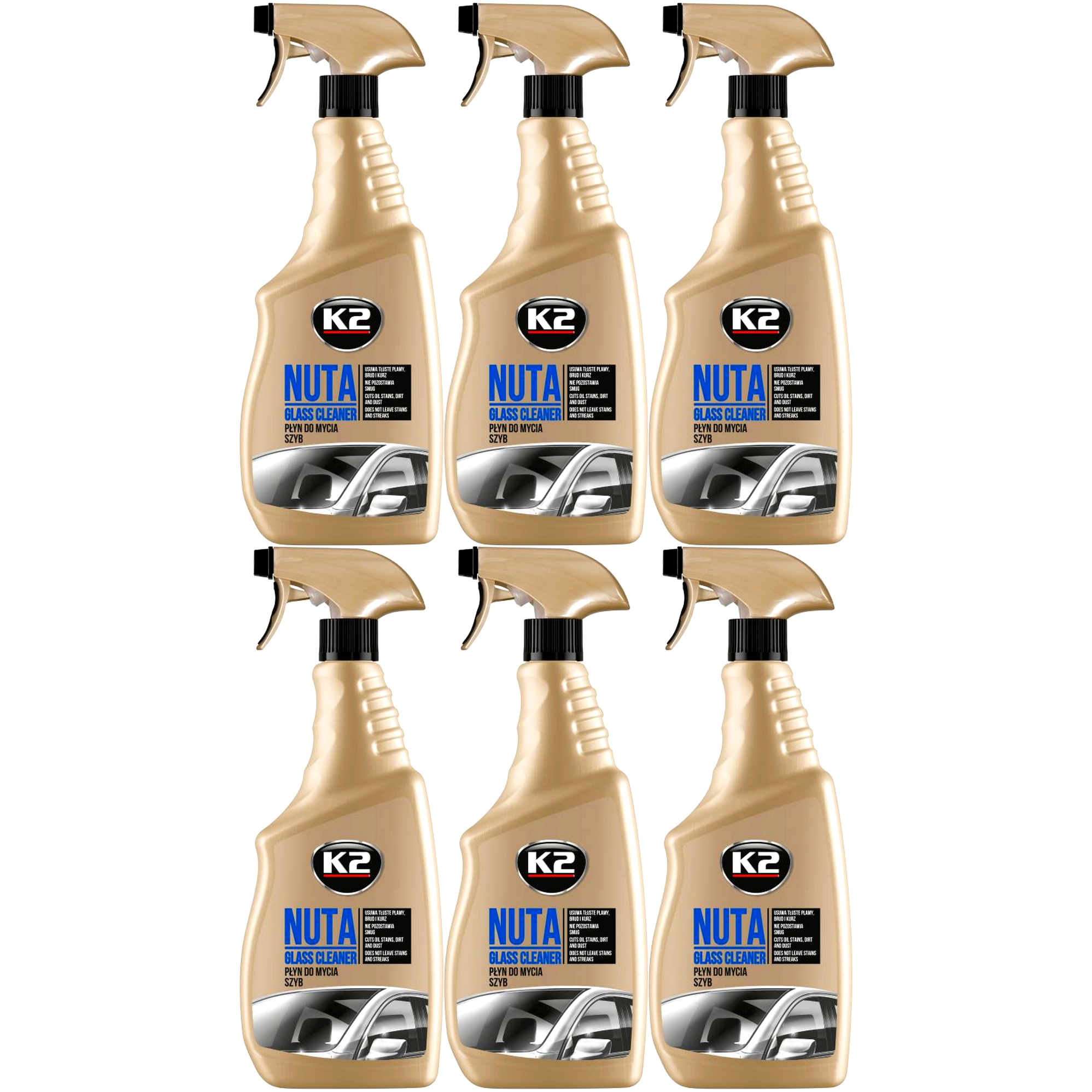 Płyn do mycia szyb K2 Nuta Glass Cleaner Spray 6 x 750ml. Płyn do czyszczenia szyb samochodowych, reflektorów oraz innych powierzchni szklanych, plastikowych i laminowanych. Bezpieczny dla lakieru. Z łatwością usuwa brud i kurz, pozostawiając idealnie czystą pozbawioną smug powierzchnię. Doskonale nadaje się także do stosowania wewnątrz auta, usuwa tłuste zabrudzenia oraz nalot od dymu papierosowego.