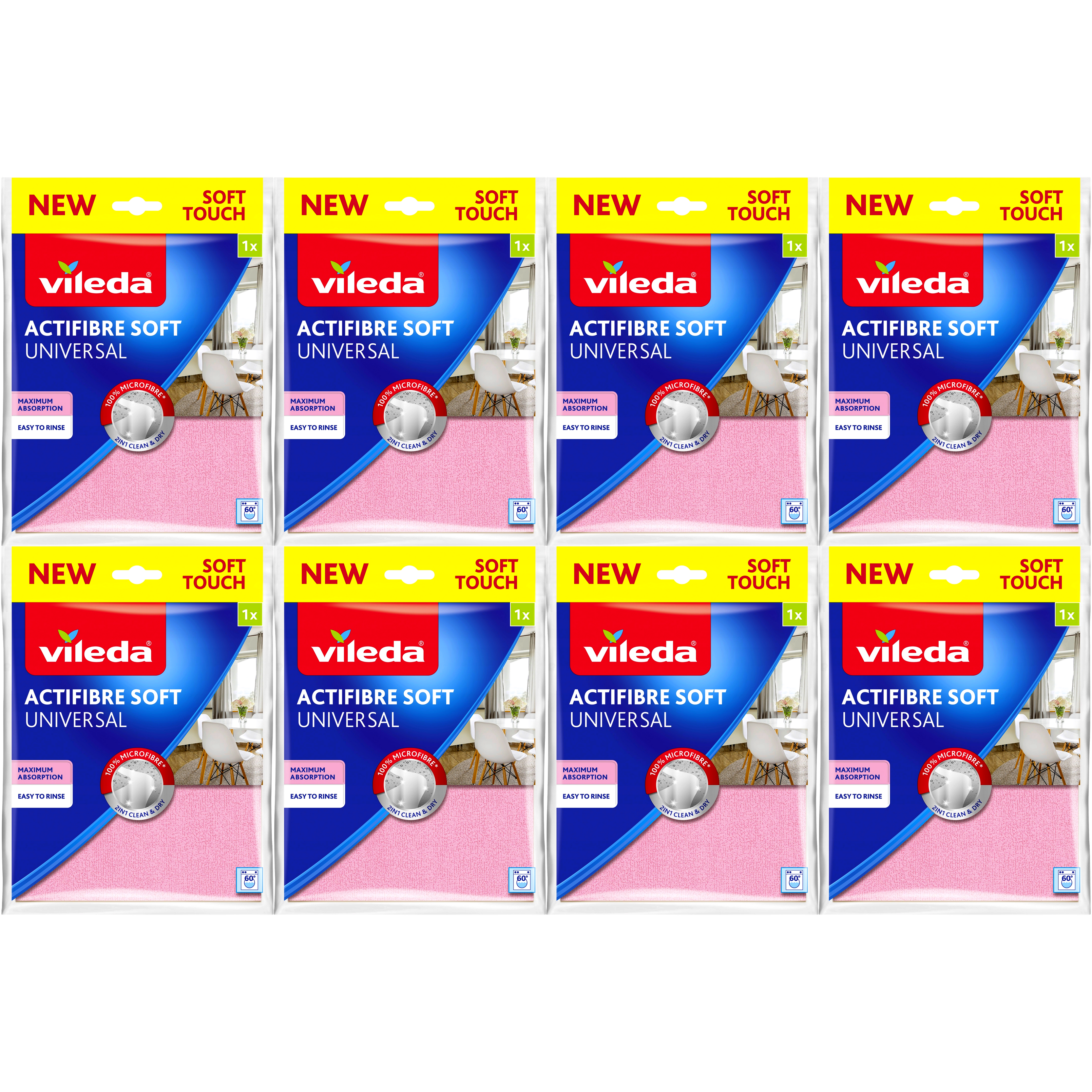 Ścierka mikrofibra VILEDA Actifibre Soft Touch pink różowy mikrofaza 8 szt. Ściereczka uniwersalna wykonana jest w 100% z mikrofibry. Ściereczka Vileda Actifibre Soft usuwa nawet uporczywe zabrudzenia przy użyciu samej wody i nie pozostawia smug i zacieków, dzięki czemu świetnie sprawdzi się świetnie do sprzątania różnych powierzchni w kuchni, łazience lub salonie.