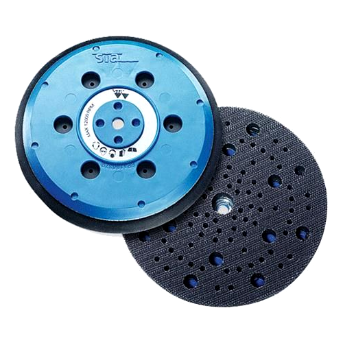 Talerz mocujący miękki SIA 5/16" i M8 z komorą powietrzną do szlifierek rotacyjno-oscylacyjnych (mimośrodowych). Zapewnia optymalne odpylanie, oszczędność do 30% materiału ściernego. Możliwy montaż do praktycznie wszystkich typów szlifierek oscylacyjnych 150 mm.