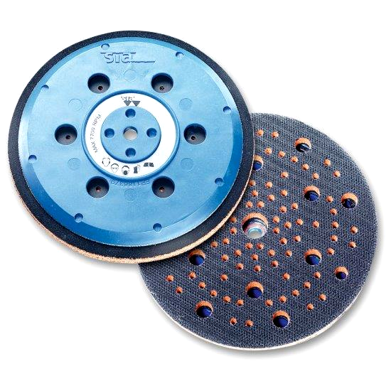 Talerz mocujący bardzo miękki SIA 5/16" i M8 z komorą powietrzną do szlifierek rotacyjno-oscylacyjnych (mimośrodowych). Zapewnia optymalne odpylanie, oszczędność do 30% materiału ściernego. Możliwy montaż do praktycznie wszystkich typów szlifierek oscylacyjnych 150 mm.