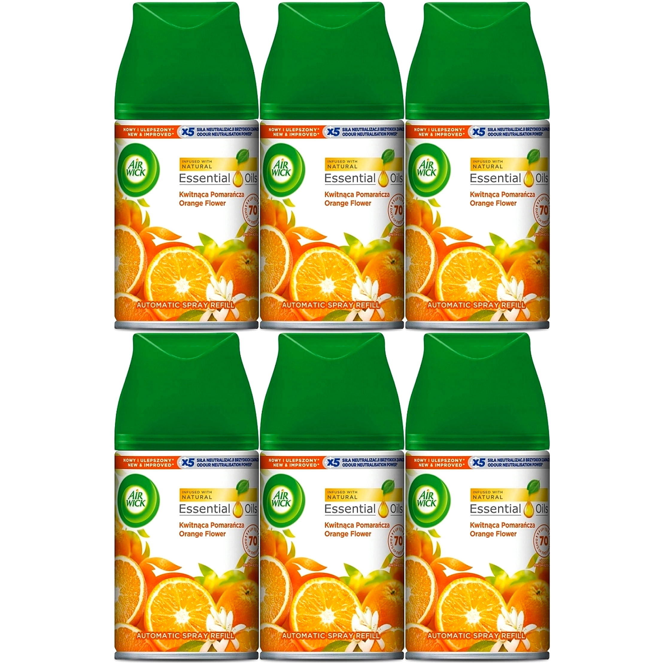 Wkład do automatycznego Odświeżacza Powietrza AIR WICK Kwitnąca Pomarańcza 6 x 250ml. Air Wick Freshmatic odświeżacz wkład Citrus Kwitąca Pomarańcza.