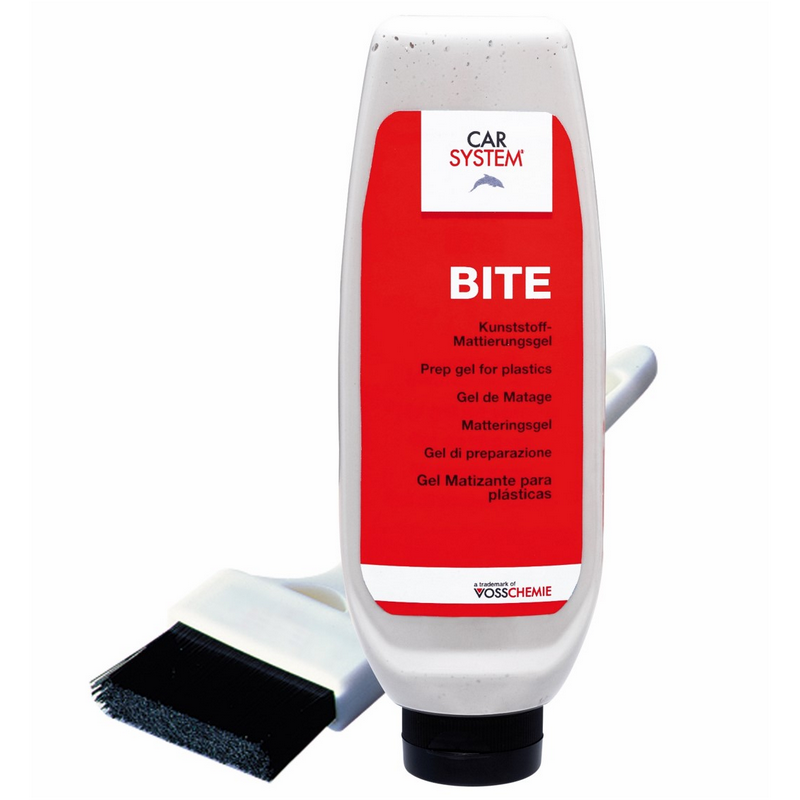 - Carsystem Bite jest wydajnym i ekonomicznym środkiem matującym i odtłuszczającym powierzchnie do nowych niezagruntowanych elementów z tworzyw sztucznych. Środek stosowany z włókniną matującą – taka kombinacja zwiększa właściwości matujące włókniny.