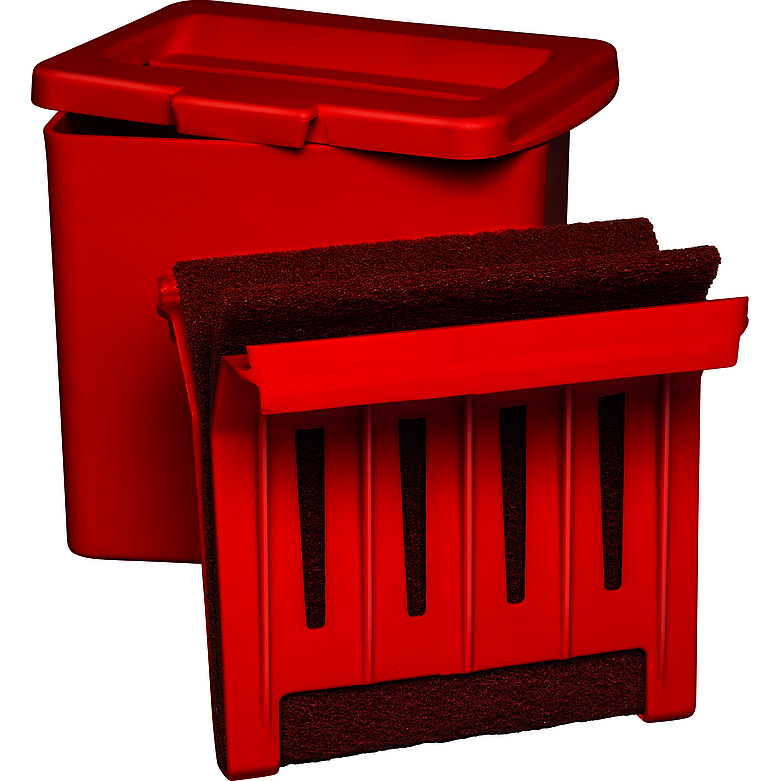 Przenośny sprzęt CARSYSTEM do szybkiego i dokładnego czyszczenia szpachelek. Zestaw składa się z uchwytu do szpachelek oraz pojemnika na płyn czyszczący.